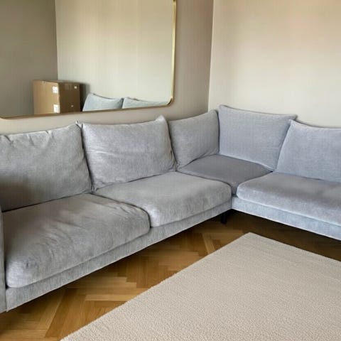 Divansoffa Madison från Mio. Inköpt 2022 för 33.000kr. Utrustad med avtagbar klädsel, kuddar och sittdynor i dun. Lätt att puffa upp så den ser fin ut hela tiden. Klädsel är Attractive beige.