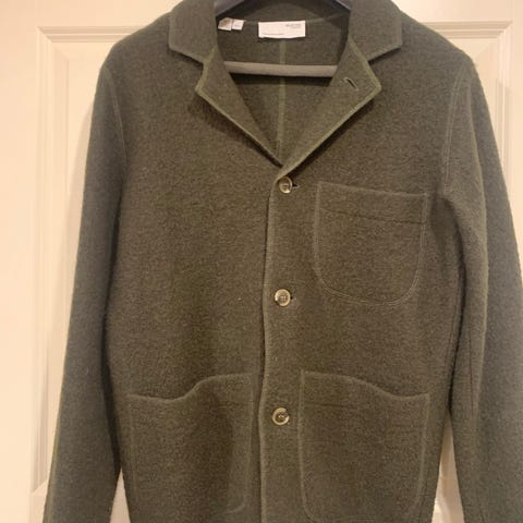 Ralph Lauren kofta för herr i storlek M. Koftan är grön och stickad i ull med v-ringad halsringning och knäppning med knappar framtill. Modellen har två framfickor och förstärkta armbågslappar i kontrastfärg. Passar som vardags- eller lagerplagg över skjorta eller t-shirt.
