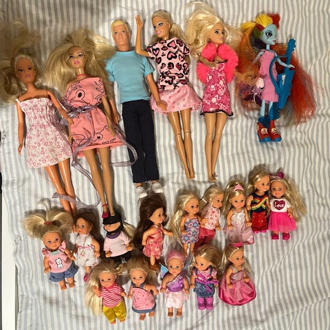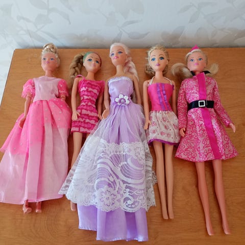 1. 8st dockor, olika färger och längder på håren, olika outfits, begagnade, priset är för alla + frakt
