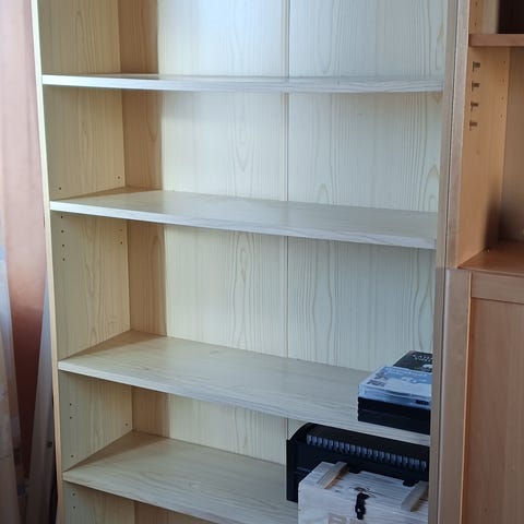2 sektioner: en 90 cm bred, en 60 cm bred. Flyttbara hyllplan. Bortskänkes mot hämtning!