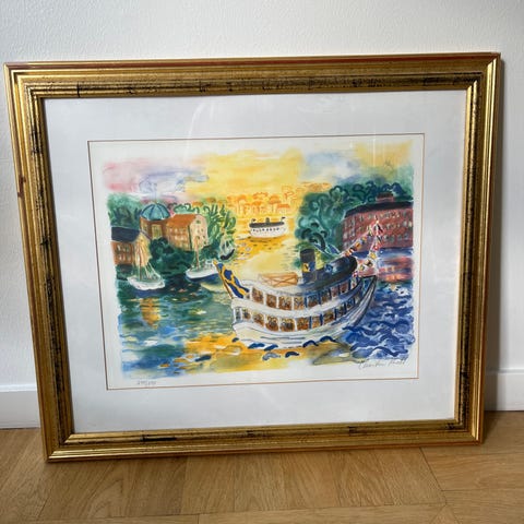 Professionellt inramade med svart ram och syrafri vit passepartout som lyfter fram konstverken på ett mycket elegant sätt.