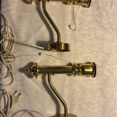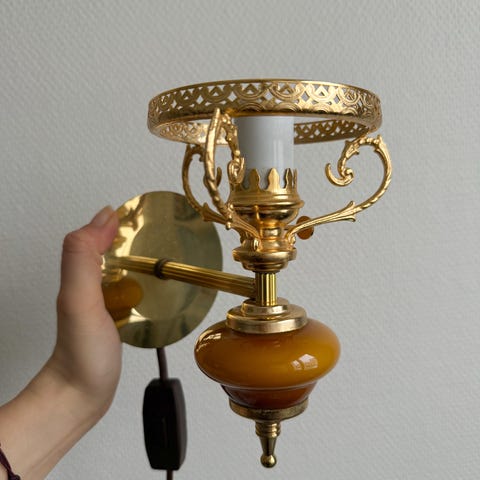 3 stk vägglampa i mässing med transparent glaskupa. Lampan monteras på vägg och har rund väggplatta samt avlång arm i metall. Glaskupan är klar och formad för att släppa igenom ljuset runtom. Passar som belysning i hall, vardagsrum, sovrum eller längs en vägg där riktat och dekorativt ljus önskas. Används med passande ljuskälla enligt armaturens sockel (ej specificerad här).