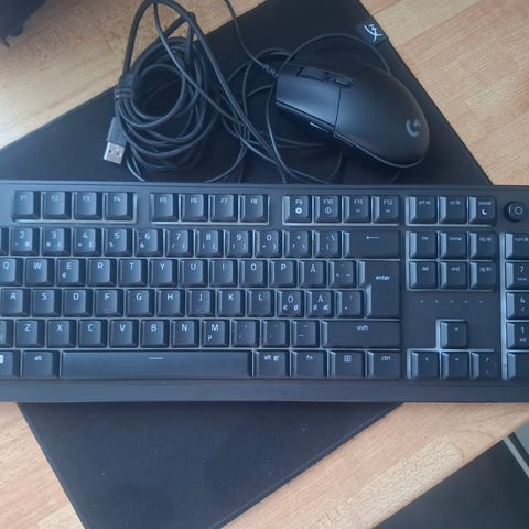 HP tangentbord och mus, modell: HP Pavilion 800 Keyboard and mouse kit, liten defekt. G tangenten har gått av, så den är limmat tillbaka. den funkar som vanligt, men den går inte att trycka innåt som andra tangenterna.