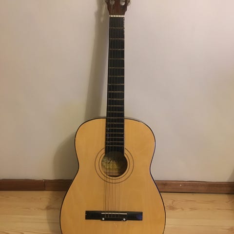 Gitarren har förvarats i ett torrt utrymme och har inga mekaniska skador. Ett utmärkt val för dig som vill börja lära dig spela eller söker ett pålitligt instrument till ett rimligt pris.