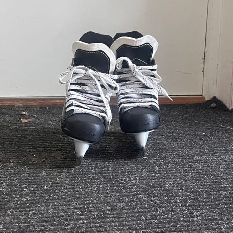 Pro Flyers 500 ishockeyskridskor i storlek 37. Skridskorna är svarta med vita snören och har en stabil yttersko med vadderad insida för stöd och komfort runt fot och ankel. Passar nästan alla med skostorlek 37 som behöver skridskor för åkning på is.