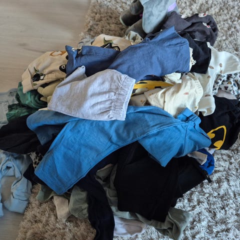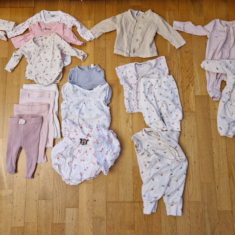 Säljer ett fint klädpaket till bebis i storlek 50–62. Totalt ca 30 plagg, bland annat bodys, byxor, overall och tröjor. Flera plagg är knappt använda, vissa bara tvättade.