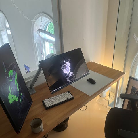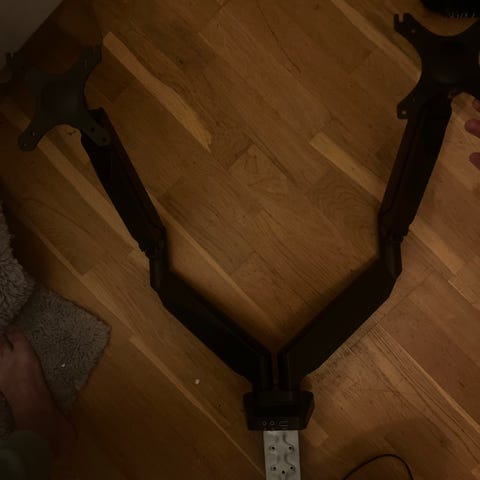 Black double VESA mount. Used for many years, still holds screens up to 27''. Selling because I got a new desktop set up.