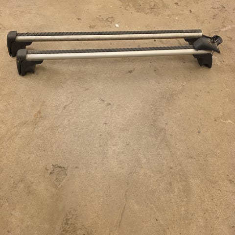 Thule takräcke i svart utförande har suttit på en Volkswagen golf årsmodell 2016.Består av två lastbågar med tillhörande fötter för montering på bilens tak. Passar för montering av exempelvis takbox, cykelhållare eller annan taklast som är avsedd för takräcken av denna typ.