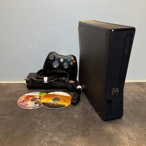Konsol (Trinity), 250GB hårddisk, handkontroll samt en strömadapter ingår.