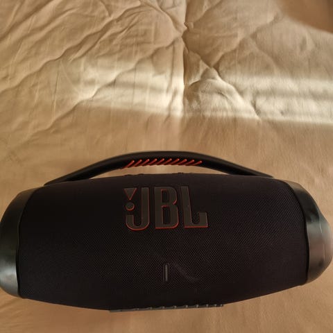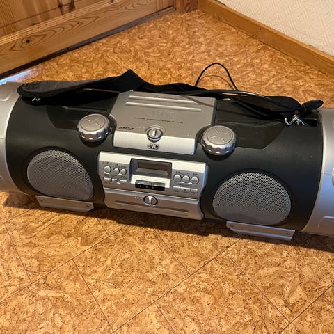 JVC boombox / kaboom i utmärkt skick. Perfekt för dig som vill ha en snygg, stilren och smidig högtalare i retro stil med grymt ljud och bas, utan den där märkliga designen med RGB lampor de nya modellerna har. Portabel med bärrem och batteridrift. Utöver högtalare och bärrem (med två fack/mini-väskor som sitter på bärremmen för fjärrkontroll och kablage) medföljer även fjärrkontroll (med nya batterier), nätkabel (för anslutning till eluttaget) och AUX-kabel (för anslutning till mobil/dator/övrigt tillbehör), samtliga original och i mycket gott skick.