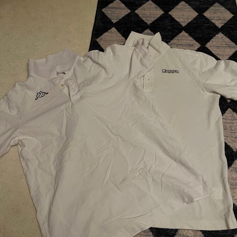 Pikétröjorna har klassisk krage och knappar, medan t-shirten har rund hals och kort ärm.