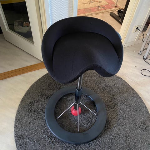 Brizley balanspall (kan lutas åt alla håll). Höjden justeras enkelt via bygeln under sitsen mellan 60-85 cm.