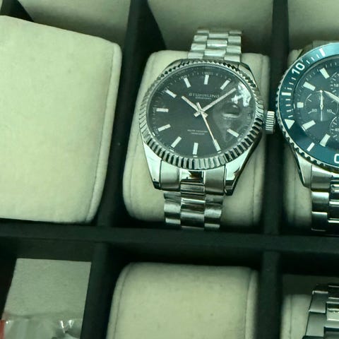 Swatch herrklocka med silverfärgat metallarmband. Urtavlan har mörk grundfärg med tydliga markeringar och visare. Boetten är rund och klockan levereras med justerbart länkarband i metall. Passar för vardagsbruk och mer uppklädda tillfällen för män. Exakta mått och modellbeteckning saknas.