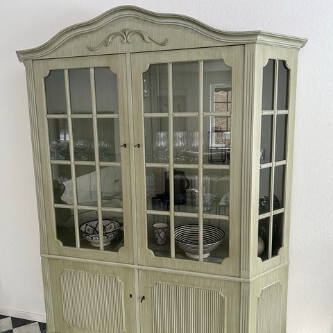 Fint vitrin skåp . Delbart Målat med kvalitets färg . Bärhjälp vid hämtning . Måste bort snarast