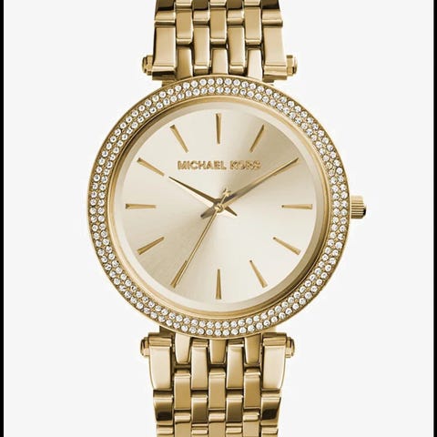 Michael Kors klocka i jättebra skick. Klockan är väl omhändertagen och ser ut som ny! I färgen roséguld och puderrosa med fina stenar runt urtavlan.