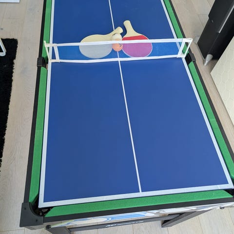 Säljer ett superkul och mångsidigt bordsspel från SportMe som garanterat bjuder på många skratt för både barn och vuxna. Det är ett 3-i-1 set där du enkelt växlar mellan shuffleboard, curling och bowling på den långa, jämna spelytan. Perfekt för hemmakvällar, kalas eller som en rolig utmaning i vardagen! Spelet är komplett med alla tillbehör såsom käglor och puckar. Allt är i mycket fint skick.