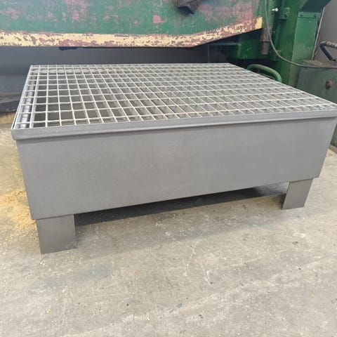 Stor rostfri balja med fungerande bottenventil och hjul.
