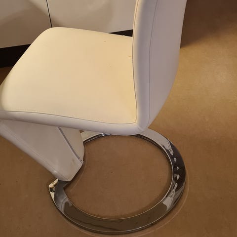 Mio stol "Jack" från 2018. Vit fauxläder med krombas.
