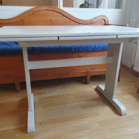 Fin och rymlig matbord som kan fällas på båda sidor för extra utrymme! Det tillkommer 4 stolar, den ena visas ej på bild men är i samma bra skick.