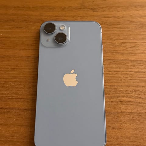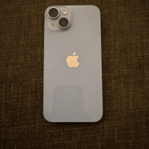 Apple iPhone 14 mobiltelefon med 128 GB lagringsutrymme i vit färg. Telefonen är bara använd en kort period sen har den legat i kartongen så den är i princip i nyskick. Levereras med originalkartong och USB‑C till Lightning‑kabel enligt bilderna.