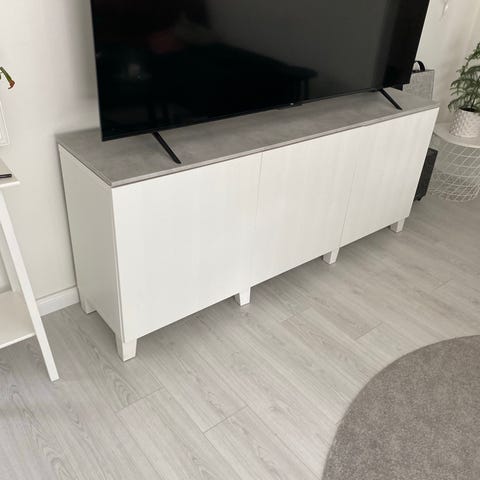 Jätte fin möbel som passar perfekt som tv bänk (den har hål i bak för sladdar till tv utrustning eller förvaringsmöbel. Med två skåp och en låda som gör att man kan förvara massor med grejer i den. Den har en klassisk design och har tryck funktion på skåpen för öppning.