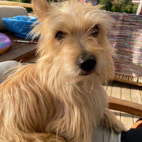 Hon Àr en fin blandning mellan Jack Russell och dvÀrgpudel, en hÀrlig kombination av energi, lekfullhet och smarthet, tillsammans med pudelns lÀttlÀrda och mer allergivÀnliga pÀls.