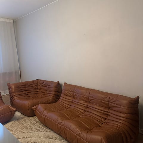 Togomoduler från franska Ligne Roset inköpta för ca 2 år sedan, varsamt använda och i nyskick. Nyklädda i tidlös cognacfärgat läder.