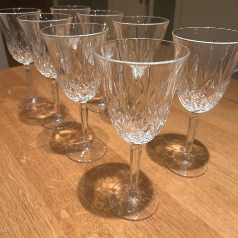 Säljer 7 st vattenglas/cocktailglas i kristall från Waterford. Alla glas har samma design och ger ett elegant och tidlöst uttryck på bordet.
