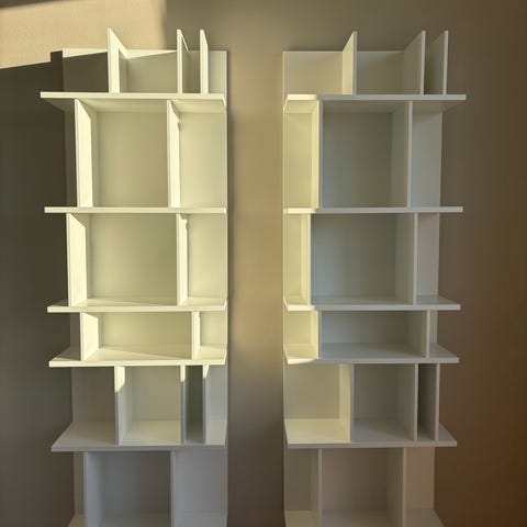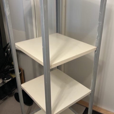 BoConcept hylla formgiven av Aage Petersen med fyra hyllplan i glas och stomme i metall. Öppen konstruktion med rektangulär form och sidostativ i triangulär design. Passar som förvaringsmöbel eller avlastningsyta i till exempel vardagsrum, hall eller kontor.