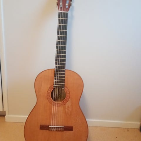 1981 Bjärton Rosita Classical natural serial 54204616. Medföljer hårt gitarrcase med röd stoppning och svart utsida.