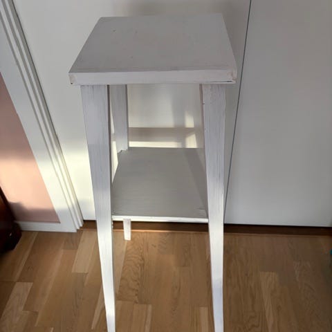 IKEA piedestal i brunmålat trä. Rund bordsskiva upptill och rund fot nedtill, sammanbunden med flera lodräta stolpar. Passar till exempel som piedestal för växter, lampor eller prydnadsföremål i vardagsrum, hall eller andra rum i hemmet. Färg och utförande ger ett enkelt och funktionellt uttryck.