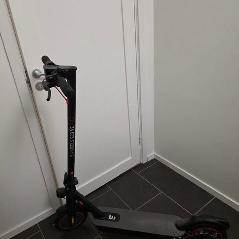 Kugoo Kirin S1 elsparkcykel i svart/orange utförande. Utrustad med digital display på styret som visar hastighet och batterinivå. Sparkcykeln har massiva hjul med orange fälgar och reflex baktill. Hopfällbar konstruktion för enklare förvaring och transport. Passar för pendling och kortare transporter på hårda underlag. Laddare inkluderad.