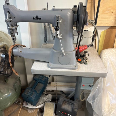 Industripelarmaskin från Adler, inställd för sömnad i något tjockare skinn och kraftigare tyg. Maskinen kan justeras efter behov innan köp om du vill anpassa den för annat material.