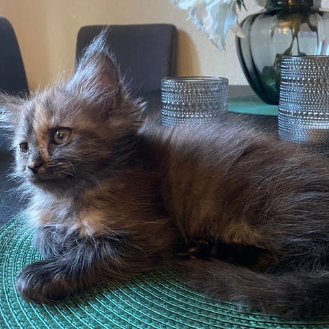 Endast denna lilla, högt kurrande mystjejen kvar som söker sitt för alltid hem. ♥️ Hon är nyfiken, social, tillgiven & trygg ♥️ hon har tjock, mjuk päls.