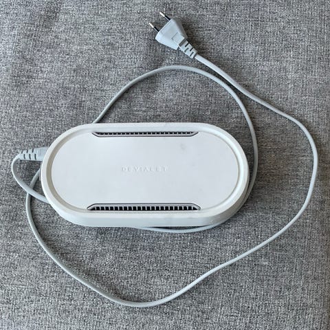 På bilderna syns Boost-enheten tillsammans med nätadapter och nätverkskabel.