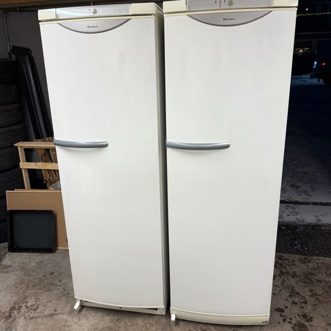 Fristående kyl och frys i form av två högskåp i rostfritt stål. Kylskåpet har flera justerbara glashyllor samt dörrhyllor för flaskor och mindre förpackningar. Frysskåpet har hyllor och utdragbara lådor för överskådlig förvaring av frysta varor. Utsidan är i rostfritt stål och insidan i vit plast. Passar för placering i kök, förråd eller liknande utrymme där man behöver separat kyl- och frysförvaring.