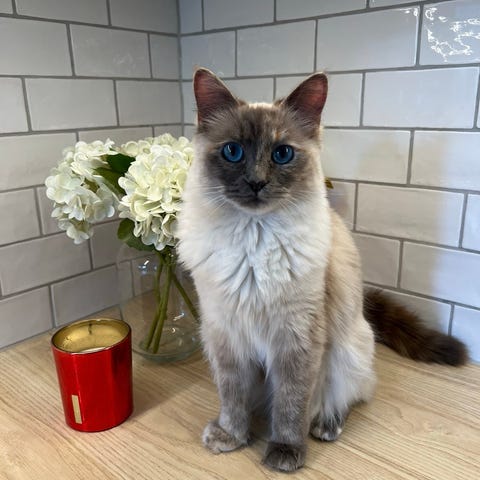 Pip är en social och vacker ragdollhona med mycket personlighet. Hon är pratglad, nyfiken och söker kontakt. Hon är van vid barn och annan katt och är trygg i sig själv. Född 8 oktober 2025