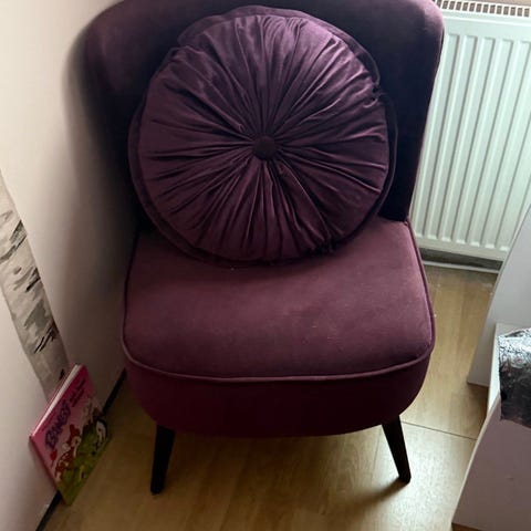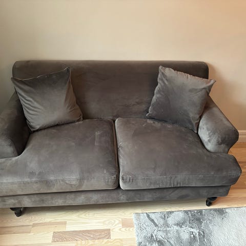 Grå liten sammet soffa