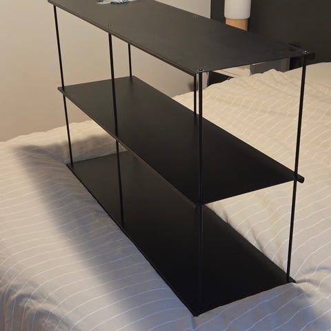 Mech ger dina vinglas en snygg och välförtjänt plats i hemmet. Hyllan är i svart metall med fyra vinglashängare, tre krokar och en praktisk hylla för förvaring. Hyllan hängs upp i två länkar som du enkelt kan justerar efter takhöjd och behov. Varje vinglashängare rymmer tre större glas eller fyra glas av mindre modell. Mech är perfekt att hänga över köksön eller matbordet för att få nära tillgång till porslinet, kryddväxterna eller köksredskapen.