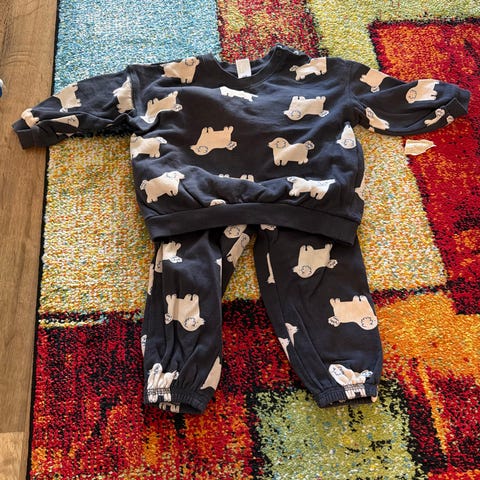 Nickolodeon 2 set barnkläder för pojke i storlek 86. Setet består av tröja och byxa med flerfärgat tryck med tecknade figurer. Tröjan har lång ärm och randigt mönster, byxorna har resår i midja och benslut. Materialet är mjukt och anpassat för små barn, lämpligt för vardagsbruk och lek.