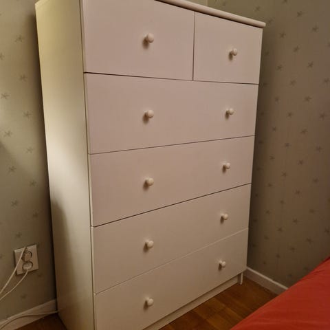 Välbevarad byrå från Mio. I samtliga lådor har jag placerat heltäckande underlägg för att bevara lådorna i nyskick. Således inga repor eller fläckar i lådorna.