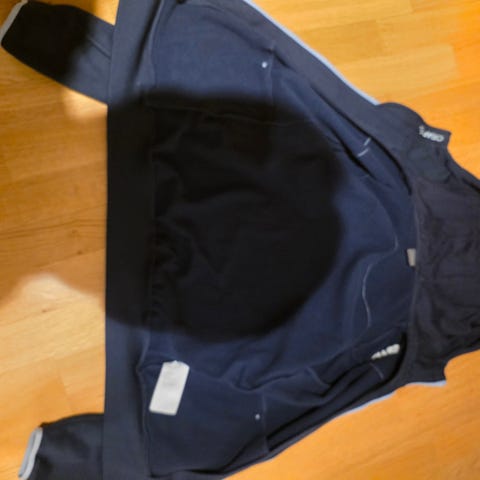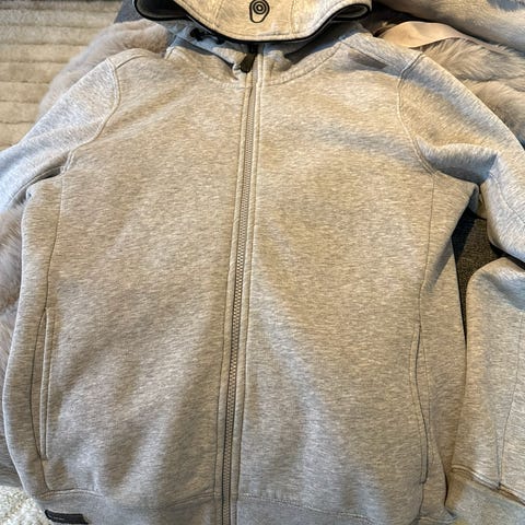 Sparsamt använd tröja från Massimo Dutti, strl xl/42. Mjuk fin ull och inblandning av bomull o syntet. Grå med mörkblå detaljer i finribbad manchester.