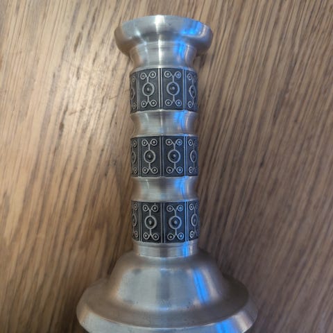 Vas är 17cm hög och 6cm dia i botten. Kransen i topp är drygt 8cm.