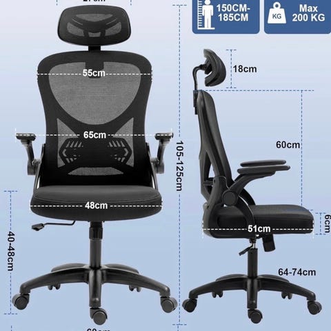 Ergonomisk kontorsstol med ländryggsstöd. Nätstol med justerbart nackstöd, ryggstöd & armstöd. Bekväm tjock sits. Max belastning: 136 kg.