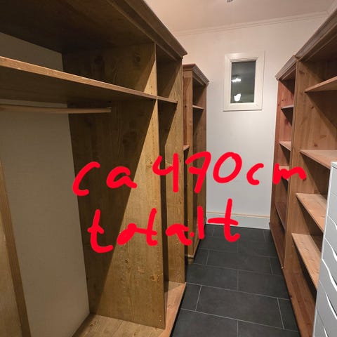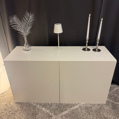 IKEA förvaringsvägg med hyllor och skåp grå