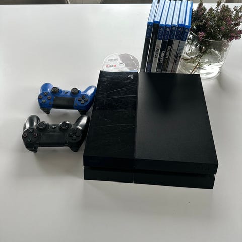PS4 Pro 1TB 6 spel 2 trådlösa handkontroller samt hdmi ,ström o usb kablage.