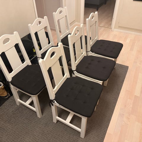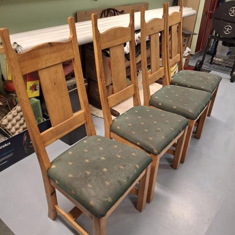 3 stycken stolar. Alla tre behöver ny klädsel och kanske bättras på i färgen.