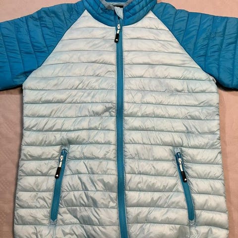I perfect condition, worn 2 times and dry cleaned. Has pockets and highlights the waist. Has a high round collar when buttoned up.