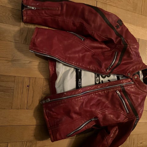 MC ställ Halvarsson DAM storlek 44 röd jacka och svarta byxor