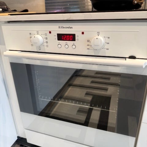 Nu byter vi kök och spisen blir över. Det enda som inte fungerar just nu är varmluftsugnen men vanlig ugn fungerar bra. Det enda som är fel på varmluftsugnen egentligen är att den gnisslar så med en rejäl rengöring eller fläktbyte så fungerar den troligtvis igen.